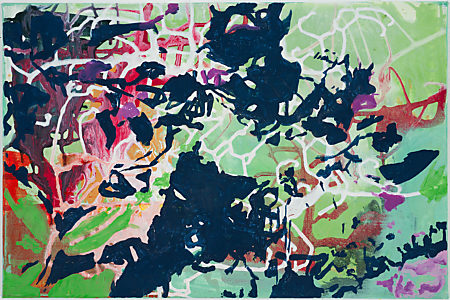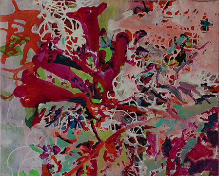 Ihr gestaltendes Vorgehen korrespondiert mit dem Sujet der Arbeiten, in denen – im weitesten Sinn – die Auseinandersetzung mit Naturhaftem und Landschaftlichem ein ebenso zentrales Anliegen ist, sie sie auf formaler Ebene versucht, die Malerei als peinture zu gestalten. Malerei als Möglichkeit, im Sichtbaren das Unsichtbare mitzudenken und umgekehrt das Unsichtbare zum Gegenstand ästhetischer Erfahrung zu machen.“ |