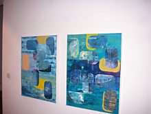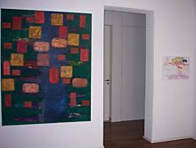 rechts Wöhrmann: 4 x o.T., 2004, Mischt./Papier, 59 x 42 cm links Reimnitz: o.T., 2006, Acryl/Papier,100 x 70 cm | |