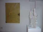 rechts: Twins, 2011, Holz, Oel, Lack, Höhe 79 cm |