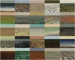 Bei anderen Bildern dienen ihr mehrere Landschaften als Ausgangspunkt. Indem sie diese in einem Raster auf einer einzigen großen Bildfläche anordnet, entsteht ein Gefüge aus geradlinig-rechtwinkligen Flächen. In der ersten Anlage sind die Landschaften naturgetreu wiedergegeben. Im folgenden Stadium löst ten Berge sich von der Realität und stimmt Farbe und Textur der Einzelbilder aufeinander ab, um zu einer ausgeglichenen Komposition zu finden. Im Bildganzen sorgt der Wechsel von statischen und dynamischen Landschaften für ein spannungsreiches Spiel mit Farbe, Kontrast und Rhythmus. |