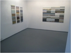 Die Idee zu den kombinierten Landschaftsbildern ist zufällig entstanden. In ihrem Atelier hingen mehrere kleine Bilder in einer Reihe nebeneinander. Die durchgehende Horizontlinie faszinierte sie derart, dass sie beschloss, diese „natürliche“ Linie für ein Raster aus Linien zu nutzen. |