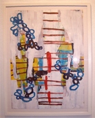 Susanne Reimnitz setzt farbige Akzente in der Ausstellung, vor allem im großen Raum. Leuchtende, stark farbige Arbeiten auf Papier besetzen Raum. In lichthaltigen Vernetzungen, schwebenden Überlagerungen, trudelnden Elementen, aber auch gebauten Kompositionen erscheinen Prozesse von Formfindung. Flächen öffnen sich in Raumebenen, Raumebenen verschmelzen zur Fläche. Zeichnerische Elemente bewegen sich dazwischen. In meist großer Hell-Dunkel- und Farbdifferenz erscheinen die Bilder stark verdichtet. Interessant bei einigen Papieren ist die Bildteilung, kaum sichtbar, aber dennoch mit Wirkung im künstlerischen Ausdruck. |